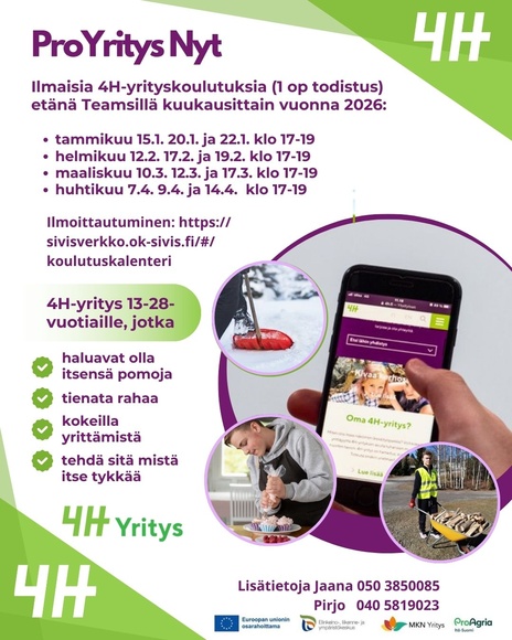 13–28-vuotias nuori, tienaa kesän massit 4H-yrittäjänä!